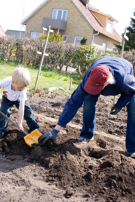 In Swedish we "put" potatoes, I have no idea what you do with them in English. Plant them? Anyway, Fabian and I put some in the ground last weekend, to get some more, eco grown, locally produced ones for Midsummer.