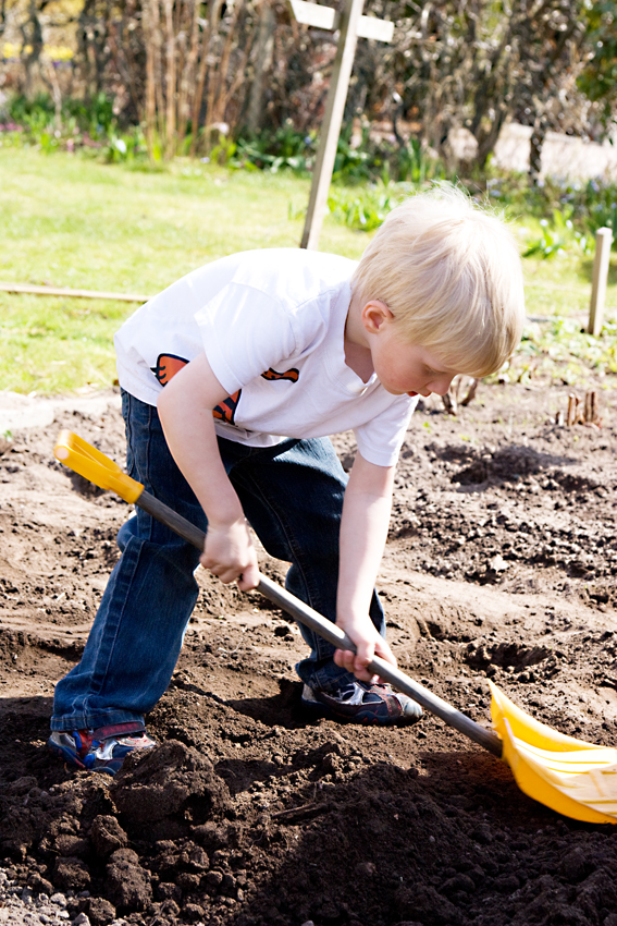 Your son is cute in your glasses! Looks like you all had a good time putting in the potatoes as well!