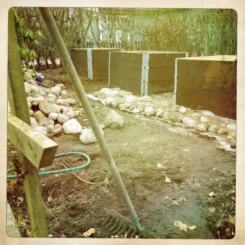Today the Mr and I have worked hard in the garden. We decided to make beds for our strawberries, rubarbs and spieces. Our hope is this is the end for all weeds…