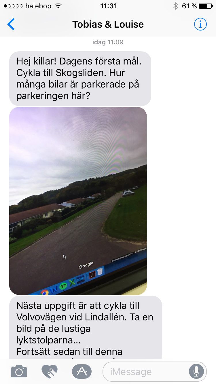 Yesterday’s activity was appreciated (even if they would die before admitting it), so we decided to do continue today we new activities. We upgraded today’s version to exclude the printouts and texted all instructions. Next time we will send a new instruction after they delivered photographic proof of performing the asked task.