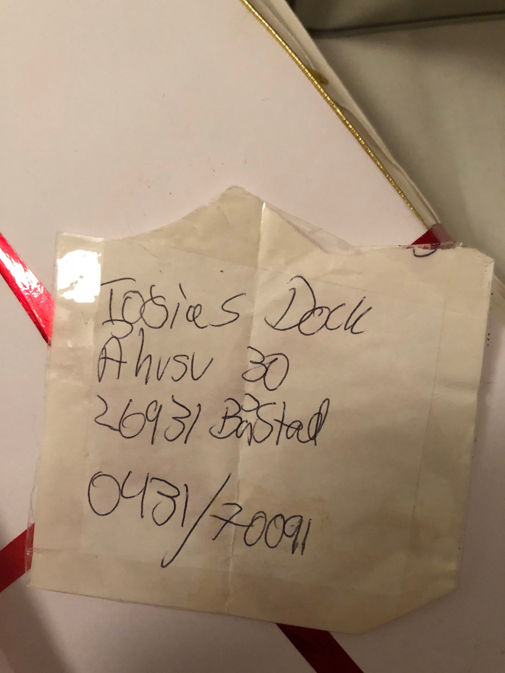 The note with number and address the Mr gave me when we first met 25 years ago. Blessed to have found him and to continue loving him.