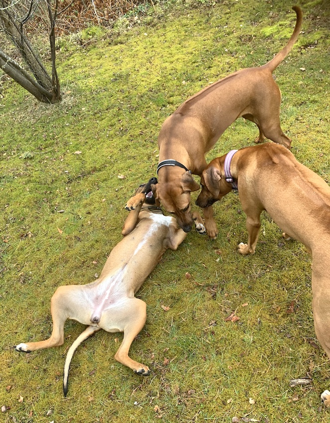 In 2022 there is nothing like this. Then we have only fun and tiresome moments. Tesla and my high school friends’ ridgeback AND an Instagram acquaintance had an expeditious and fun playdate.