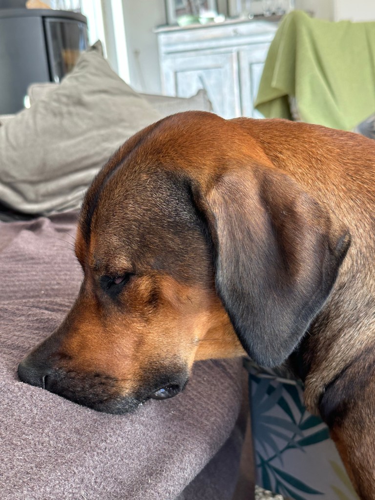 Although heavily relaxed she did her outmost to wiggle her tail when the (?) came to check if she was enough off.
